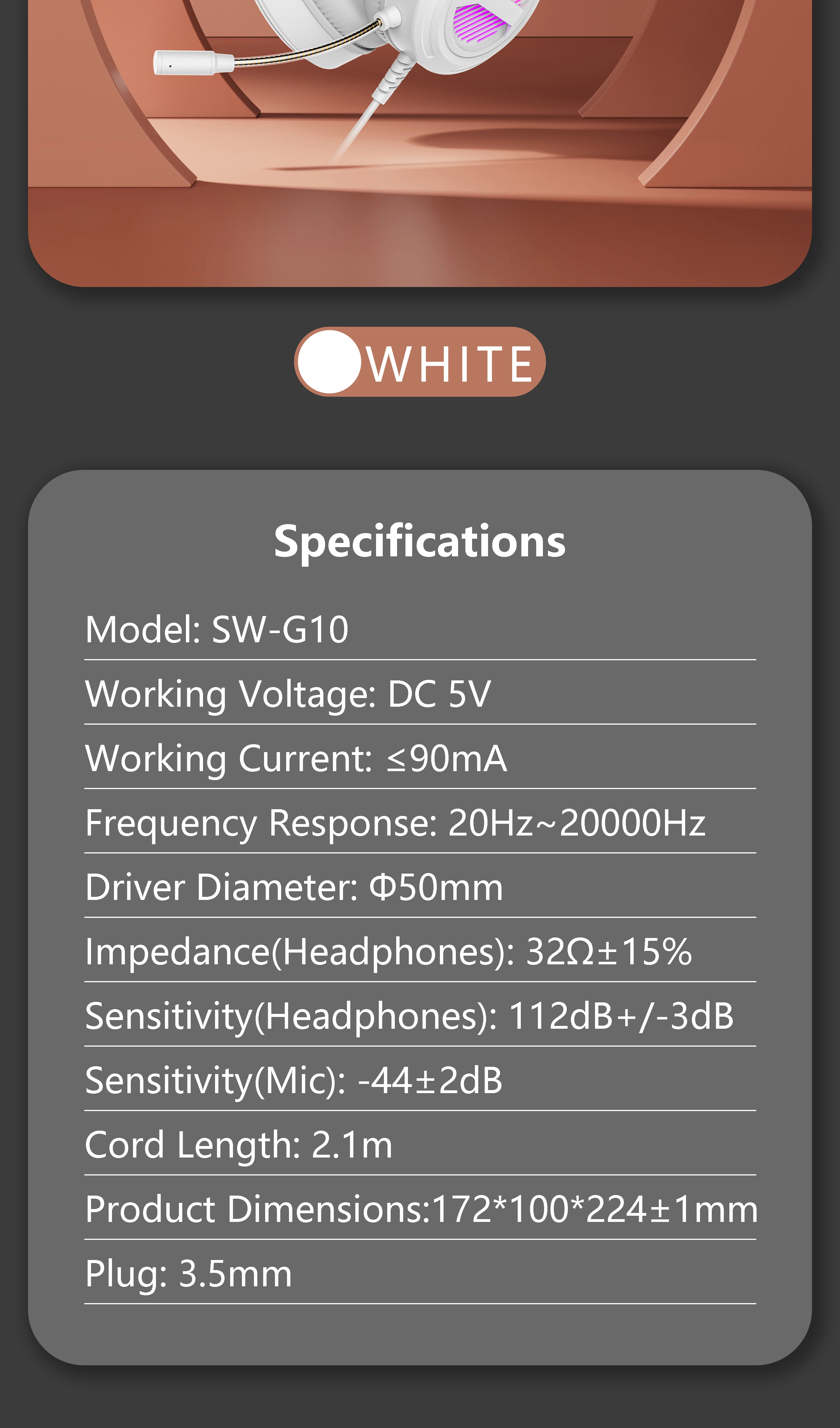 SW-G10 Gaming Headphones Wired RGB lighting USB Gaming Headphones forHeadset Bluetooth3.5mm connection Wearable Computers